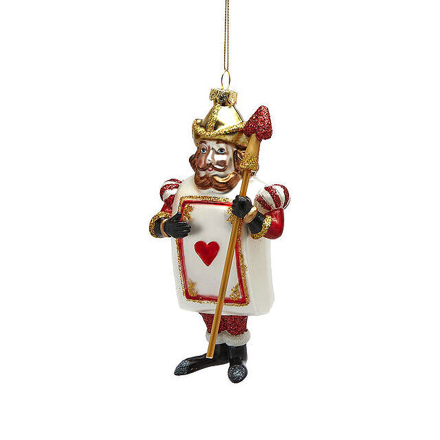 Porta la magia delle fiabe sul tuo albero di Natale con l’addobbo da appendere RE di cuori ispirato al mondo di Alice nel Paese delle Meraviglie firmato EDG Enzo De Gasperi. Realizzato in vetro pregiato, questo decoro natalizio esclusivo unisce eleganza e fantasia, trasformando la tua casa in un mondo incantato.