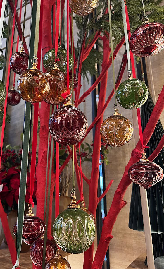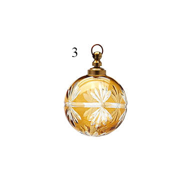 Con il suo diametro di 7,5 cm, è ideale per arricchire alberi di Natale di grandi e medie dimensioni, ma anche ghirlande e composizioni decorative. I motivi intagliati esaltano la brillantezza del vetro e il fascino del colore ambra, simbolo per eccellenza delle feste natalizie.