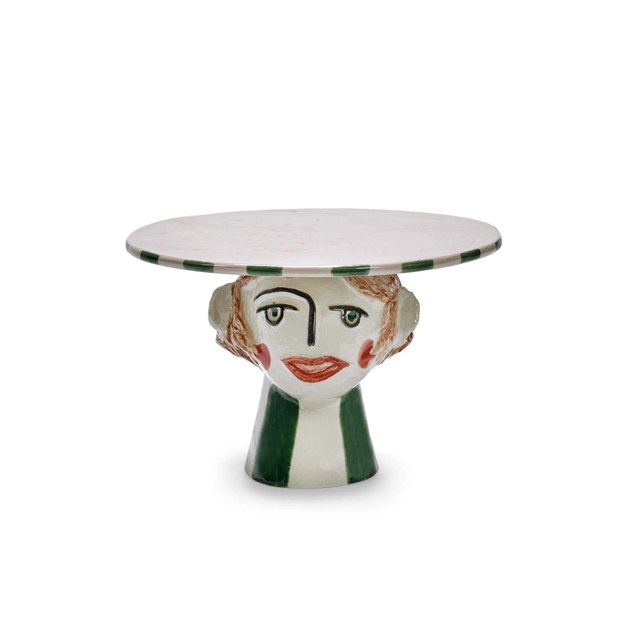 La designer principale di Serax, Marie Michielssen, è celebre per la sua sconfinata immaginazione e per un linguaggio creativo che unisce arte, design e funzione. Con Tarte de Bobonne, firma un oggetto sorprendente e poetico: un piccolo totem in gres capace di trasformare una semplice alzata per dolci – o qualsiasi piatto – in un vero centrotavola scultoreo. Caratterizzata da uno stile grezzo, espressivo e fortemente colorato, Tarte de Bobonne richiama l’estetica dell’espressionismo e del fauvismo, evocando l’energia visiva delle opere di artisti come Picasso. La combinazione bianco e verde dona equilibrio e carattere, rendendo l’oggetto immediatamente riconoscibile e altamente decorativo.