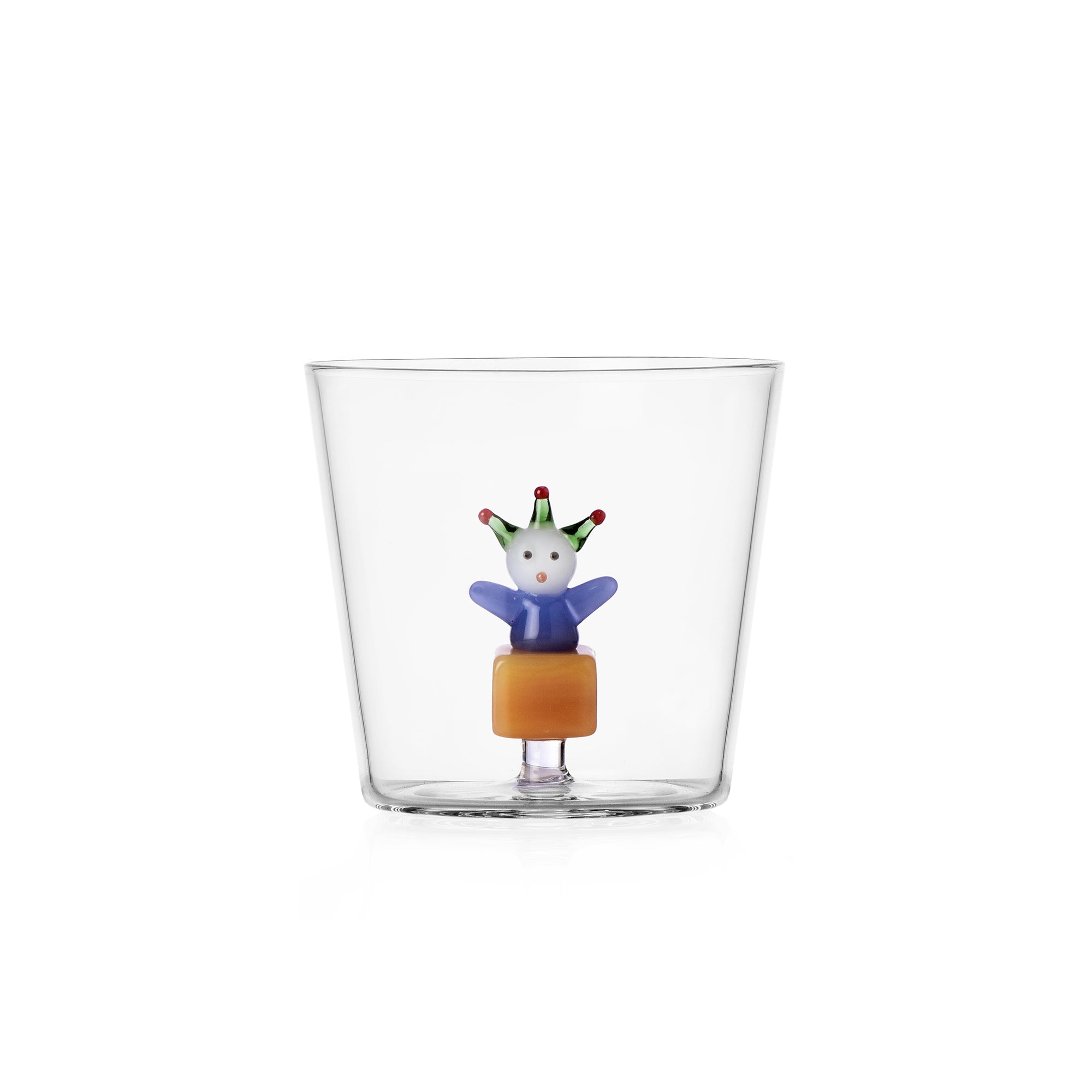 Scopri il fascino senza tempo del bicchiere tumbler Jack in the box della collezione Schiaccianoci di Ichendorf Milano, un oggetto di design che unisce eleganza, artigianalità e funzionalità. Realizzato in vetro borosilicato soffiato a mano, questo tumbler presenta al suo interno una decorazione a forma di jocher che esce dalla scatola, che rende ogni pezzo unico e speciale.
