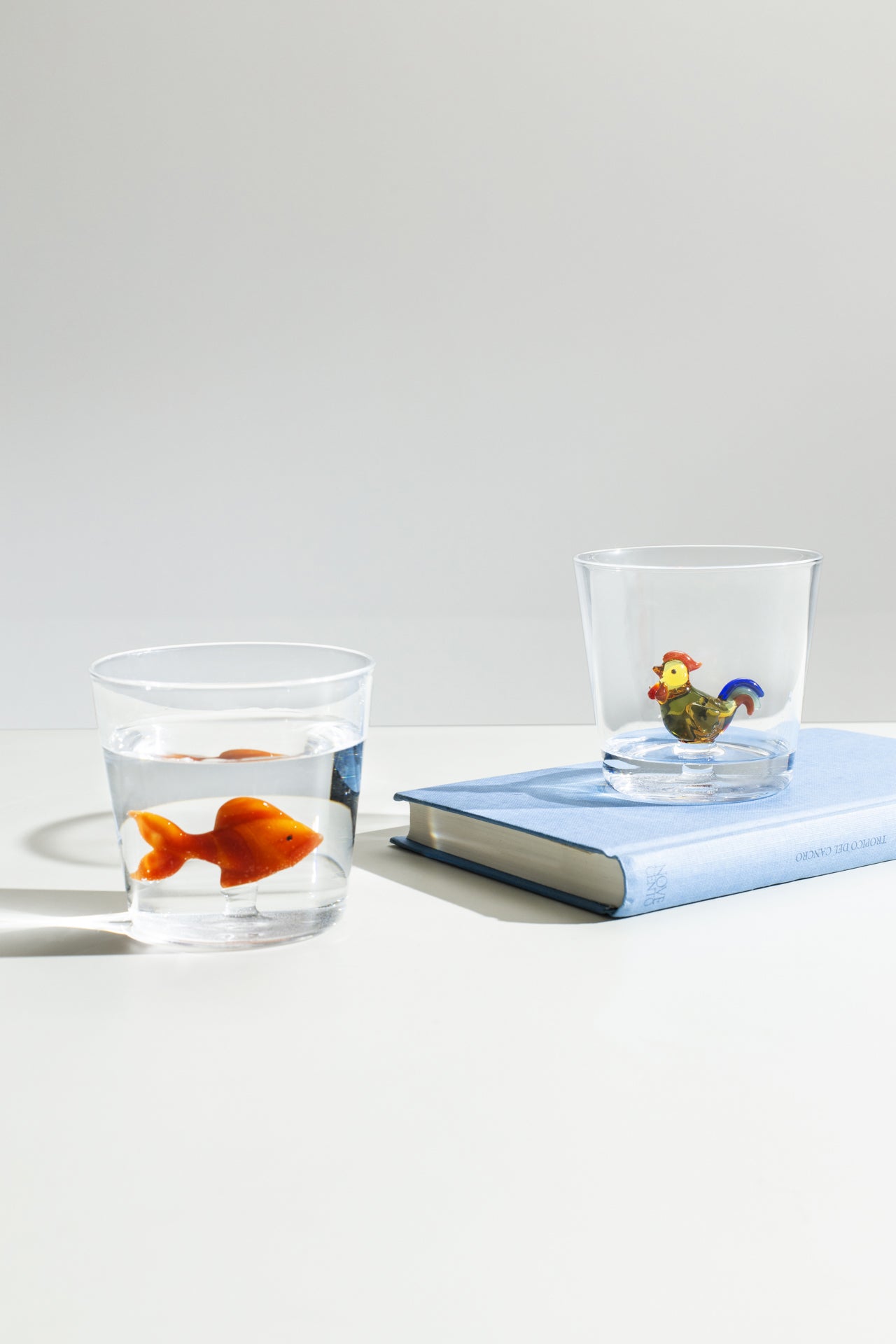 Un tocco di ironia e design per la tua tavola: scopri il bicchiere Ichendorf Animal Farm con un simpatico pesce rosso in vetro soffiato. Realizzato in resistente vetro borosilicato e modellato a mano a lume, questo bicchiere unisce funzionalità e arte, apportando allegria e originalità in ogni sorso.