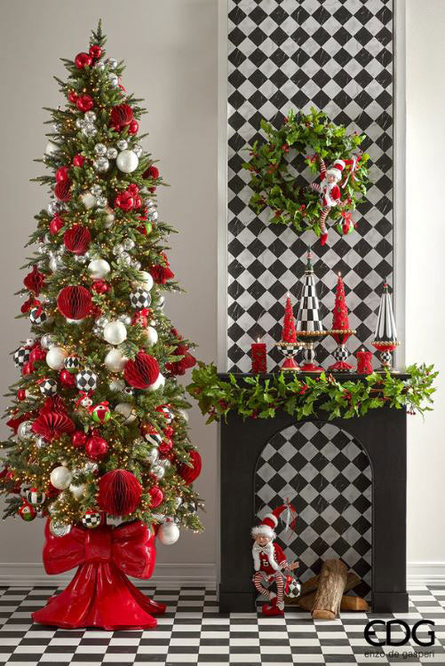 Porta un tocco scenografico e raffinato ai tuoi ambienti con la Decorazione Topiary Scacchi firmata EDG Enzo De Gasperi. Realizzata in poliresina di alta qualità, presenta un elegante motivo a scacchi nero e bianco, impreziosito da dettagli dorati, rosso e verde. Con un’altezza di 45 cm e un diametro di 14 cm, è un elemento decorativo ideale per arricchire tavoli, consolle, ingressi o vetrine con uno stile unico e sofisticato.