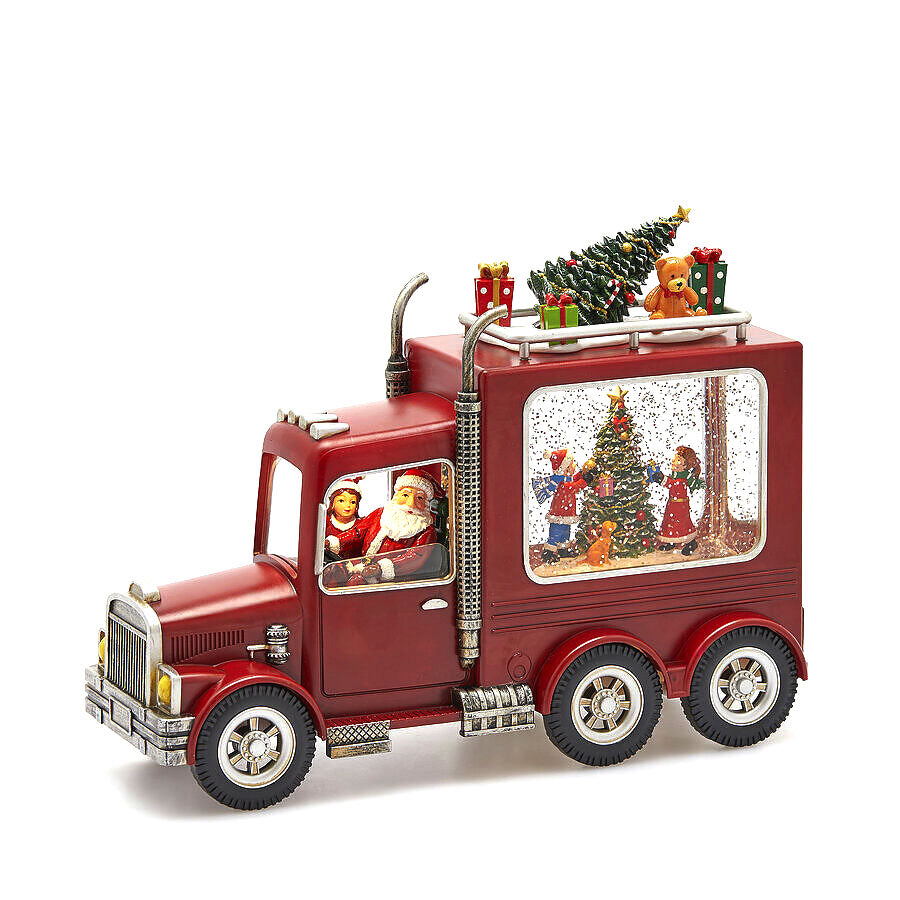Con i suoi 21,5 cm di altezza e 28 cm di larghezza, questo furgoncino decorativo diventa il protagonista di tavoli, mensole o vetrine natalizie. La scena interna animata raffigura bambini che decorano l'albero di Natale e Babbo Natale che guida, in un’atmosfera calda e gioiosa, resa ancora più coinvolgente da movimenti delicati, luci LED brillanti e melodie natalizie.