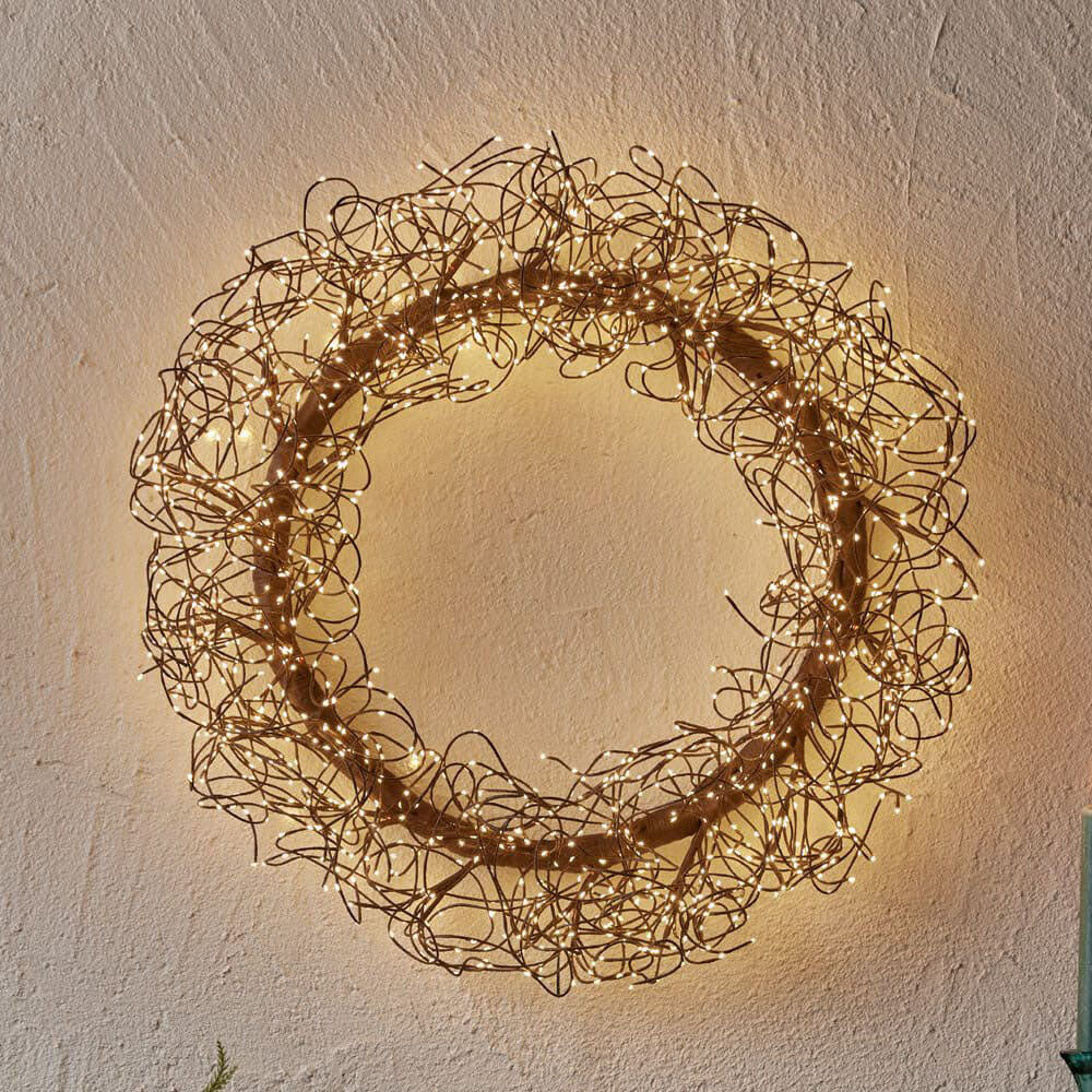 La Corona LED Lumiere è una decorazione luminosa elegante e d’effetto, perfetta per impreziosire ambienti interni ed esterni. Con i suoi 1800 microled a luce calda fissa, diffonde una luminosità raffinata e avvolgente, ideale per creare scenografie festive o atmosfere suggestive durante tutto l’anno.