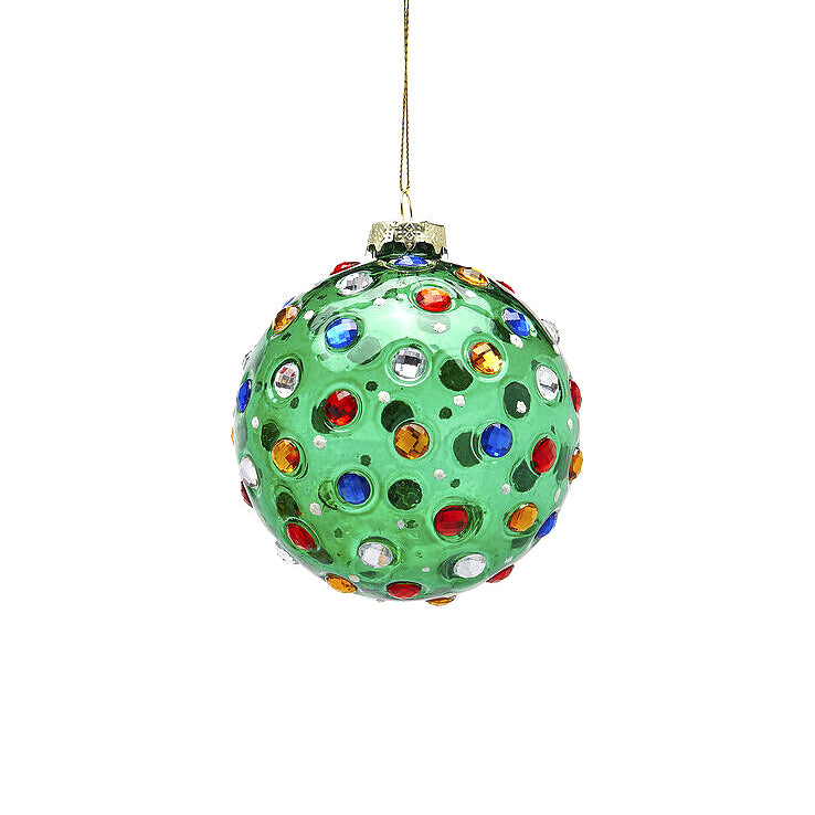 🎄 Porta un tocco di eleganza e brillantezza al tuo albero di Natale con la pallina Super Gemme di EDG Enzo De Gasperi. Realizzata in vetro di alta qualità, questa pallina da 10 cm di diametro combina i colori classici del Natale — verde, rosso e ambra — arricchiti da scintillanti gemme colorate che catturano la luce in modo magico.