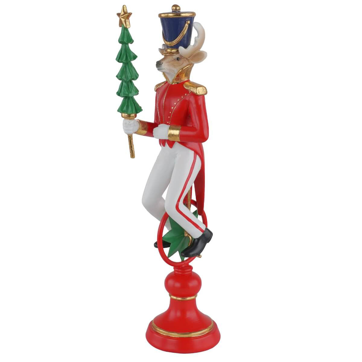 Il design unico, con la renna in equilibrio su un monociclo rosso con un alberello di Natale in mano, la rende un complemento perfetto per arricchire case, uffici, vetrine e allestimenti natalizi. Grazie alla sua stabilità e alla cura dei particolari, diventa un elemento decorativo che cattura subito lo sguardo.