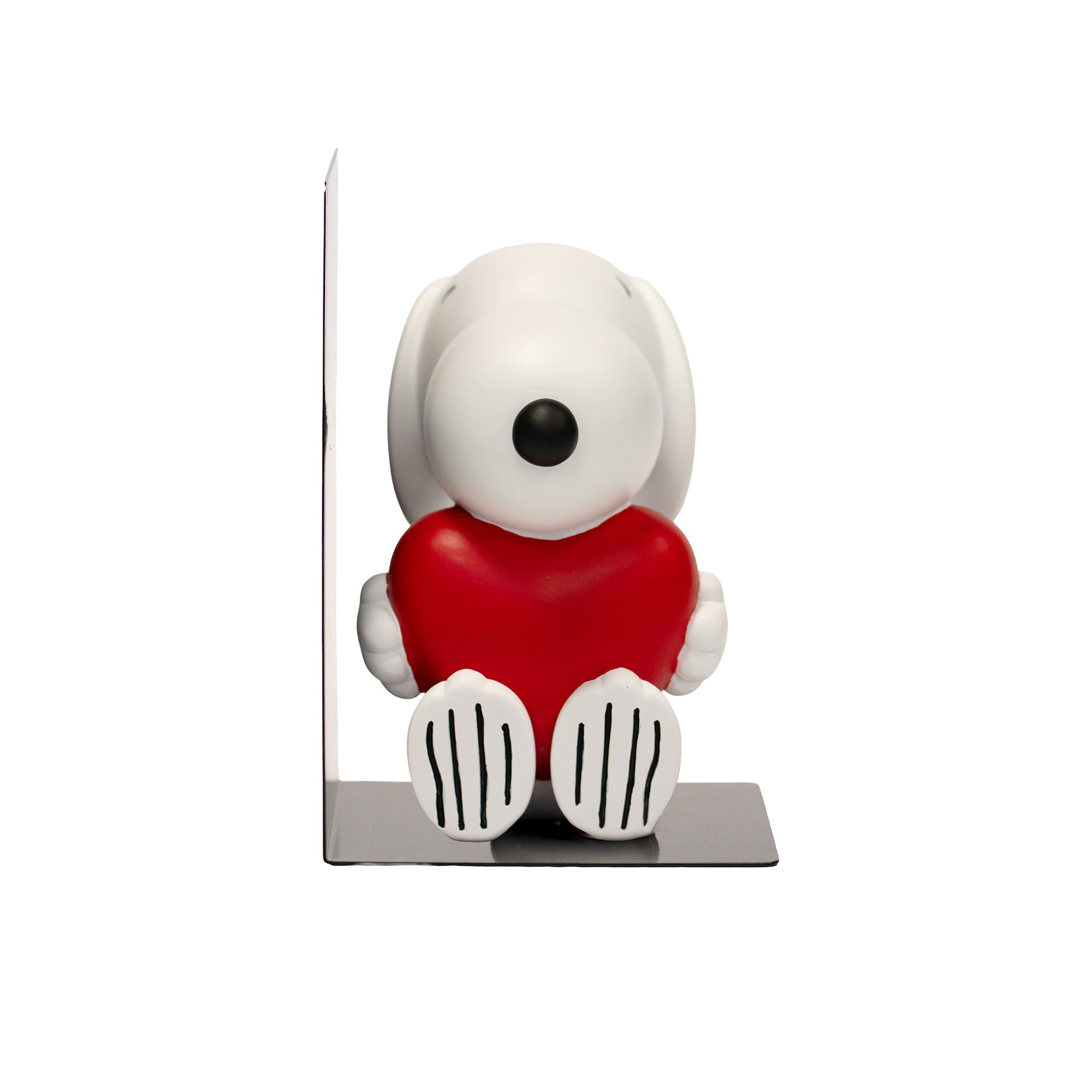 Porta un tocco di dolcezza e design alla tua libreria con il reggilibri Snoopy Book Love. Realizzato con cura da Blogo Design, questo oggetto funzionale e decorativo raffigura Snoopy, l'iconico personaggio dei Peanuts, mentre stringe un cuore rosso simbolo di affetto e tenerezza.