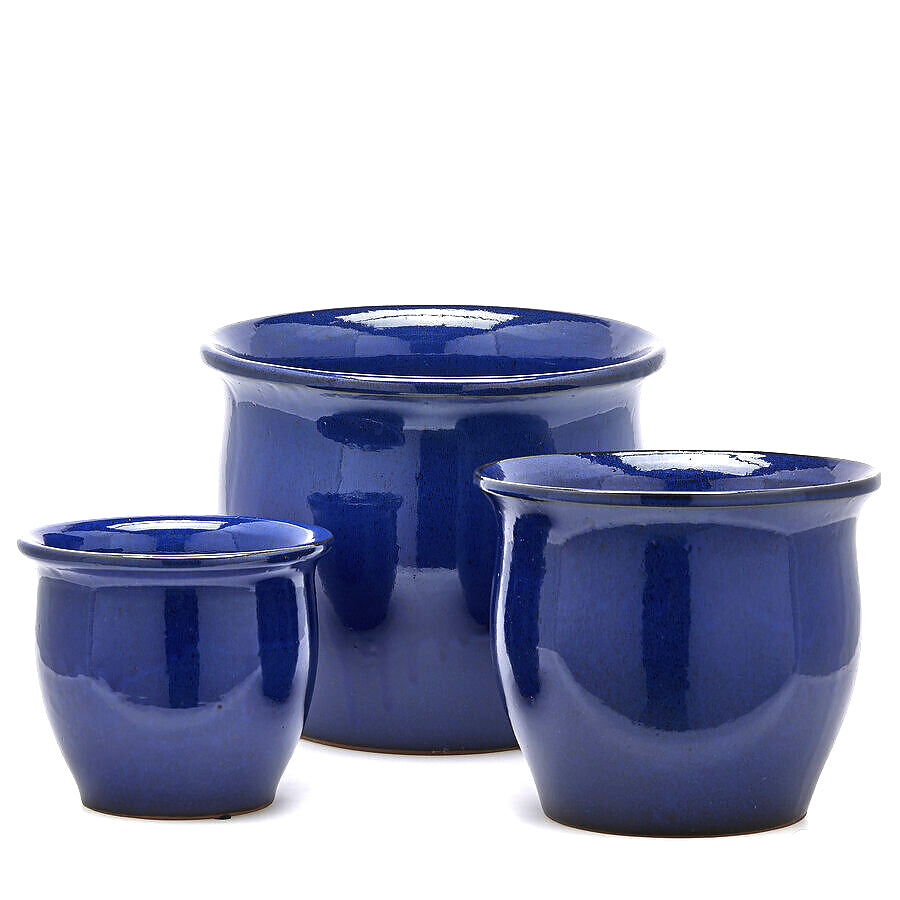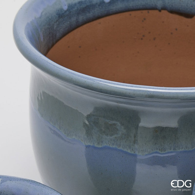 Valorizza i tuoi ambienti interni ed esterni con il set di vasi cachepot bombati in terracotta di EDG Enzo De Gasperi. Caratterizzati da un design classico e una finitura smaltata blu, questi vasi aggiungono un tocco di eleganza sobria e contemporanea a qualsiasi arredamento.