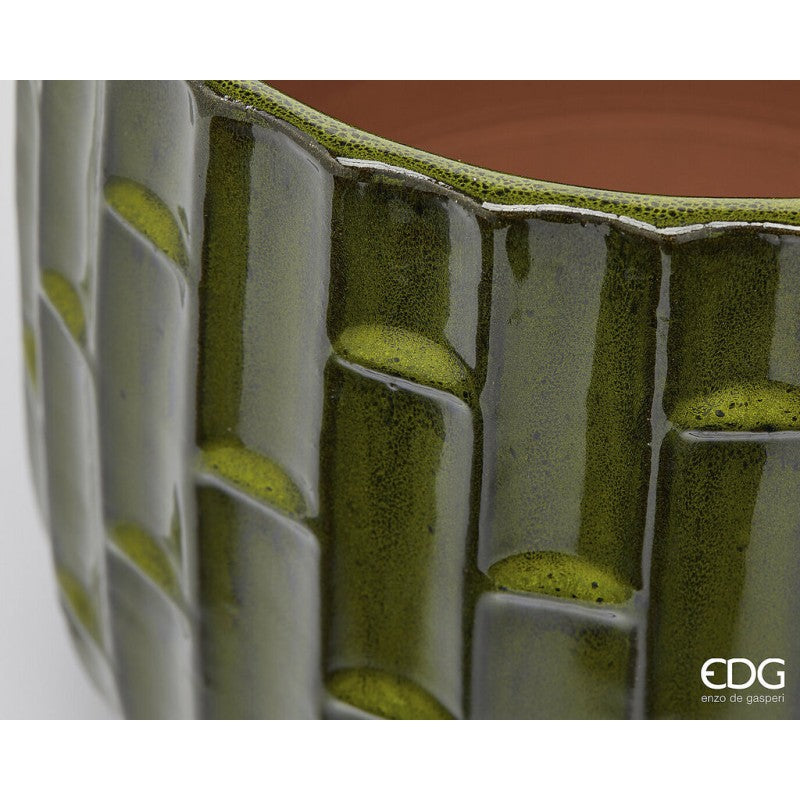Aggiungi un tocco di esotismo e design naturale ai tuoi spazi con il set di vasi cachepot Simil Bamboo di Enzo De Gasperi (EDG). Questi splendidi vasi in terracotta sono caratterizzati da una finitura smaltata verde lucida e un'elegante trama in rilievo che ricorda le canne di bamboo, offrendo un look moderno e sofisticato sia per interni che per esterni coperti.