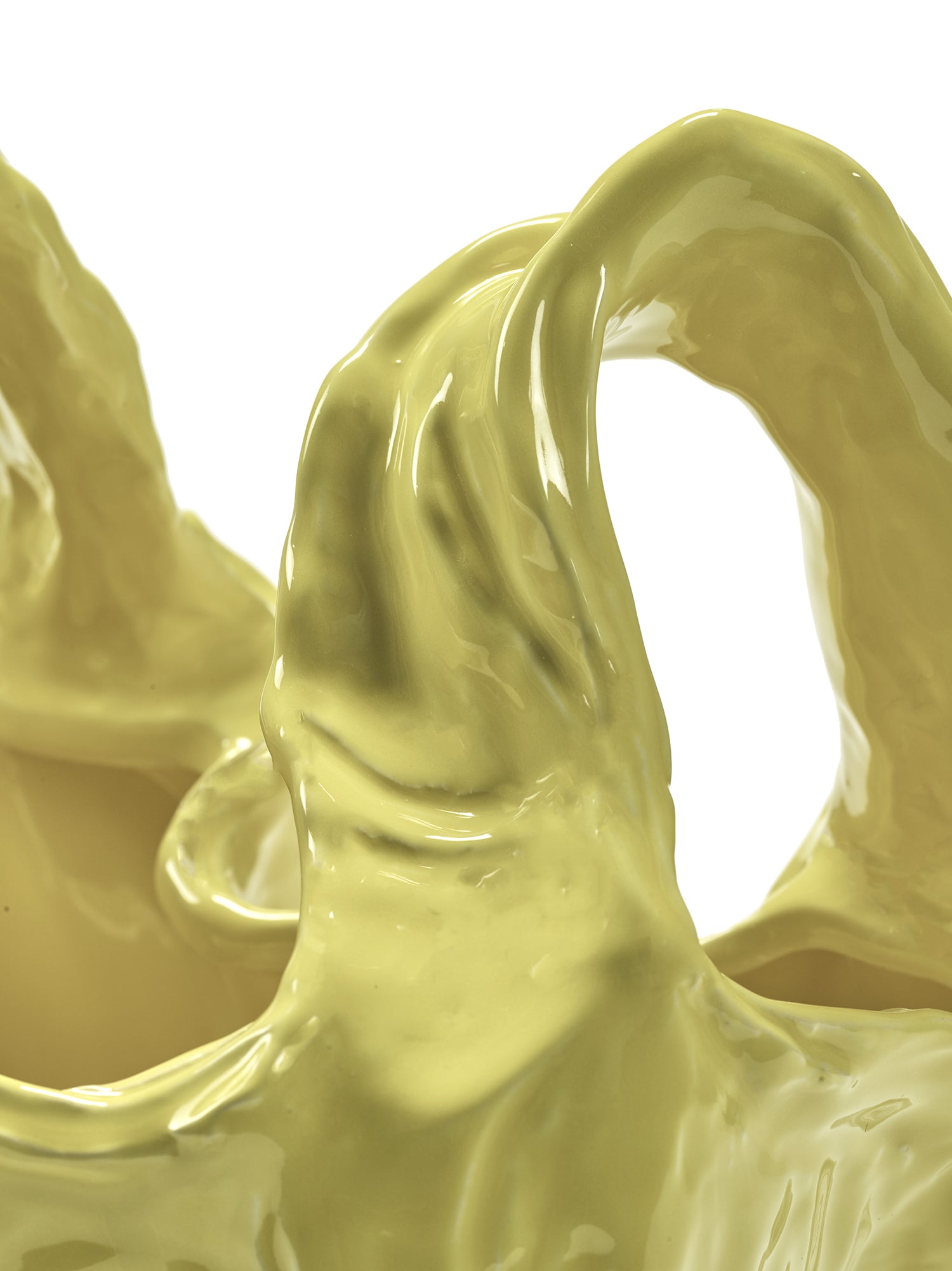 Kravtsova ha voluto catturare l'istante in cui un soffio d'aria solleva un sacchetto, creando un movimento leggero e fluido, simile al volteggiare di un abito estivo. Il risultato è un vaso scultura che si distingue per le sue forme sinuose e la sua finitura smaltata color caramello, un pezzo unico che aggiunge una nota espressiva a qualsiasi ambiente domestico.
