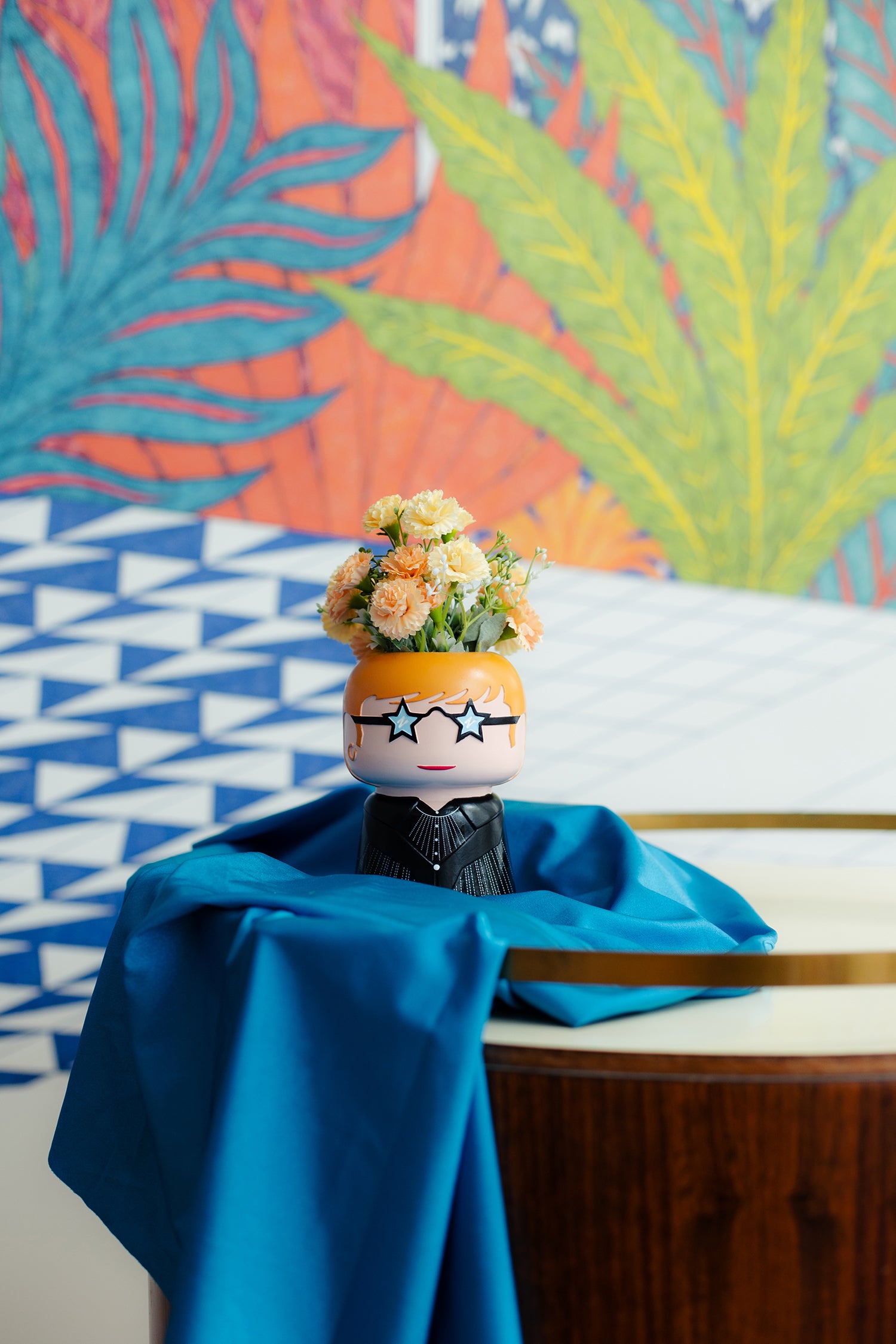 Il Vaso The Rock, con il suo design che rappresenta Elton John, celebra l'energia e lo stile inconfondibile del Rocket Man. Ogni dettaglio, dagli occhiali a stella agli abiti scintillanti, rende omaggio a una delle icone musicali più amate di tutti i tempi. Un'idea regalo versatile e moderna.