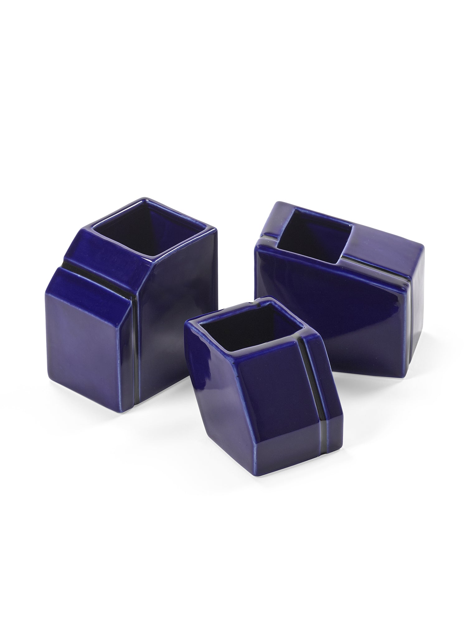 Plan C, l’eccentrico marchio di moda fondato dalla designer italiana Carolina Castiglioni, debutta nel mondo dell’interior design con una collaborazione esclusiva con Serax. Nasce così Silos, una collezione audace di vasi e portacandele che reinterpreta le forme dei silos industriali in chiave decorativa e contemporanea. Il Vaso Mini Ass/3 Silos Blu è un set composto da tre mini vasi in porcellana, caratterizzati da volumi geometrici e finiture lucide che richiamano un’estetica industriale dal gusto vintage. Il colore blu intenso esalta le linee essenziali e rende ogni pezzo un piccolo oggetto scultoreo, perfetto per aggiungere personalità e ritmo visivo agli spazi.