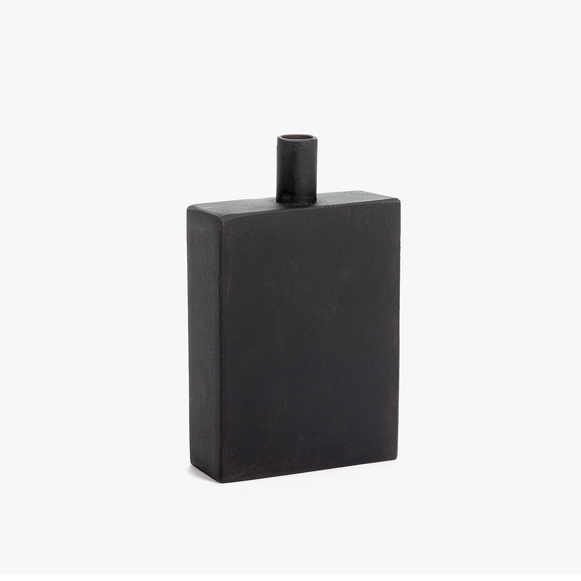 Il trattamento superficiale esalta la materialità del metallo senza togliere protagonismo alla forma, vero fulcro del progetto. Il risultato è un vaso scultoreo e minimale, perfetto per arredare spazi moderni, industriali o contemporanei.