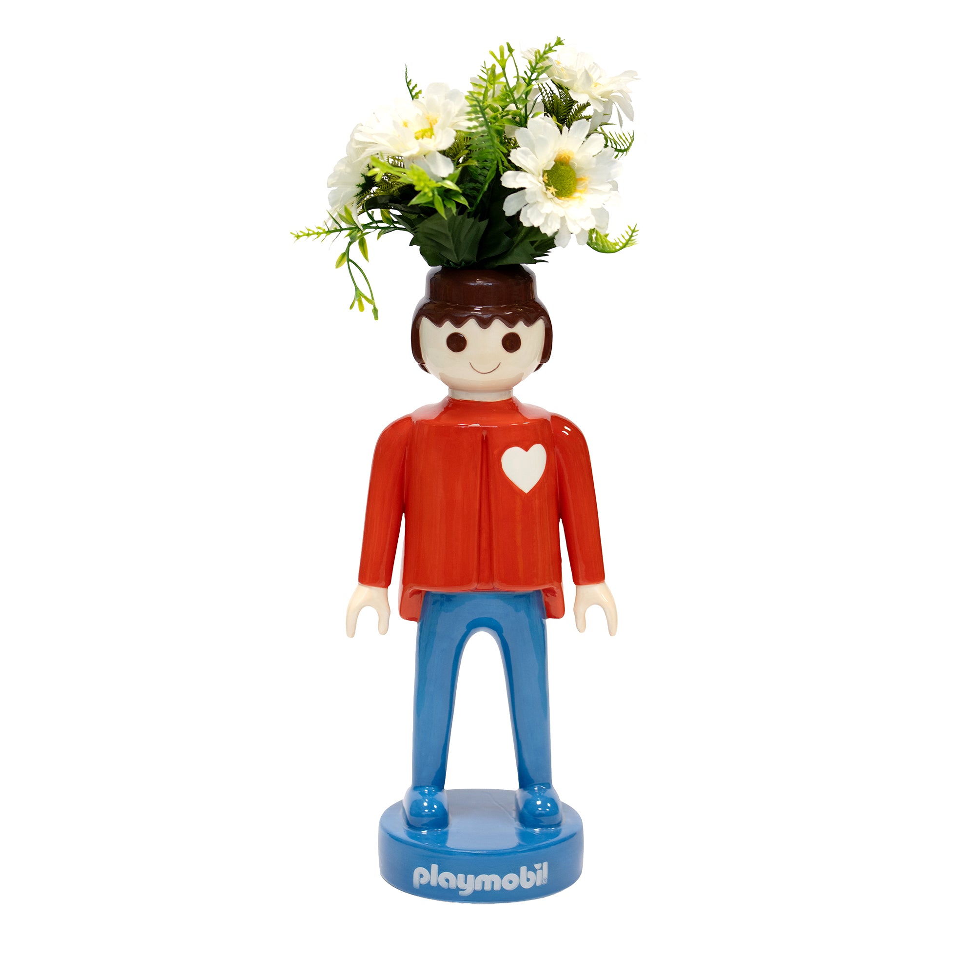 Colora i tuoi ambienti con il Vaso Playmobil Man Red H25 cm di Blogo Design. Un complemento d’arredo dal design pop e ironico, che trasforma l’iconico omino Playmobil in un originale vaso decorativo. Con la sua vivace camicia rossa, i pantaloni blu e il cuore bianco stampato sul petto, questo vaso in ceramica smaltata è perfetto per contenere fiori freschi, secchi o piante artificiali. Grazie ai suoi 35 cm di altezza, diventa un elemento protagonista in salotto, cucina, cameretta o ufficio.