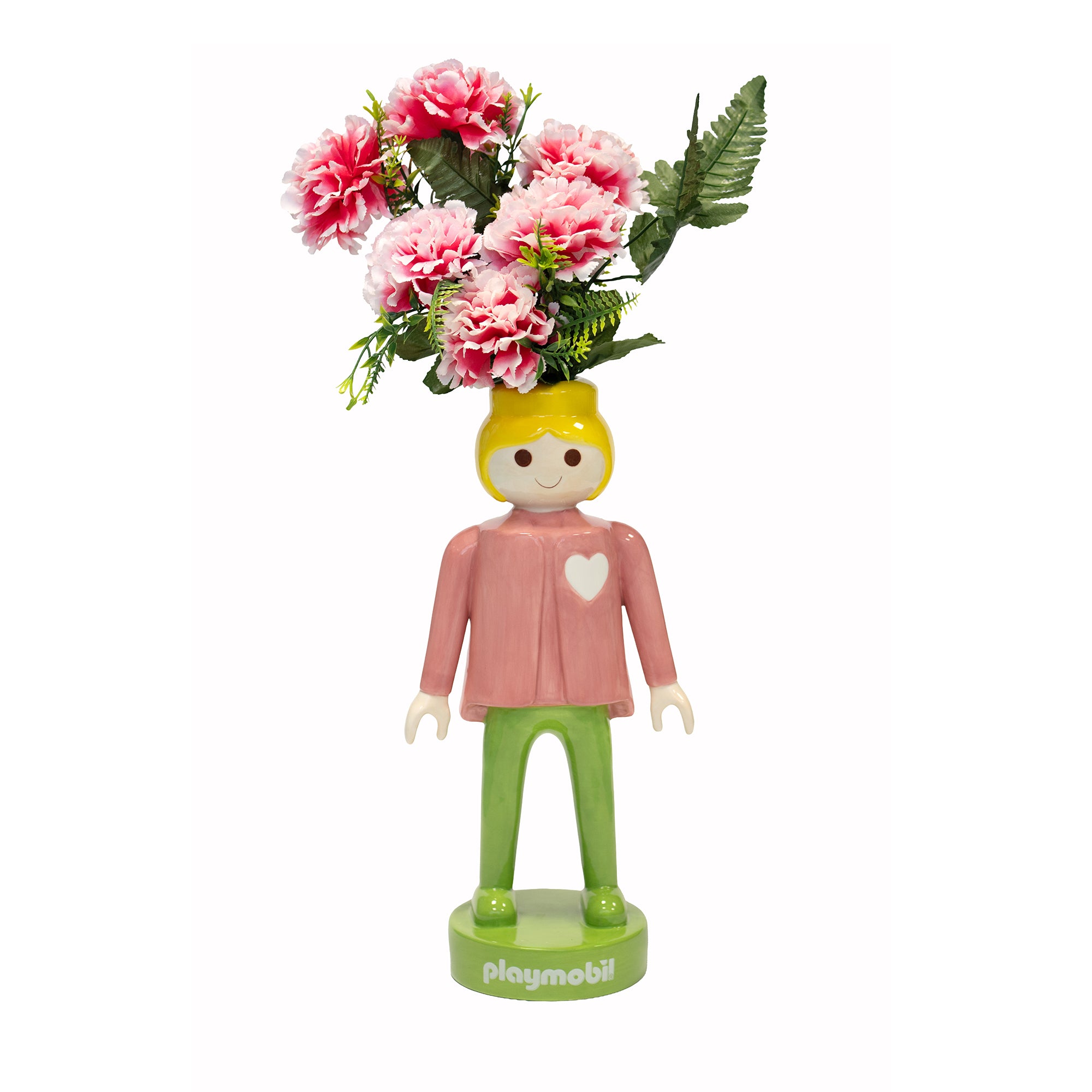 Dona un tocco di colore e allegria ai tuoi spazi con il Vaso Playmobil Women Pink H35 cm firmato Blogo Design. Un oggetto di design pop che reinterpreta l’iconico personaggio Playmobil in chiave decorativa, trasformandolo in un originale vaso da esposizione. Realizzato in ceramica smaltata di alta qualità, con dettagli rosa e un cuore bianco sul petto, questo vaso da 25 cm è ideale per contenere fiori freschi, secchi o piante artificiali. Un complemento d’arredo unico che porta ironia e stile in casa, in ufficio o in cameretta.